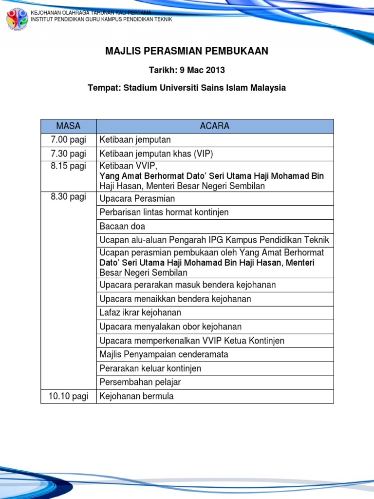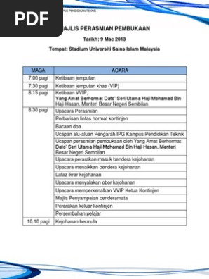 Tentatif Majlis Perasmian Pembukaan Dan Penutupan Pdf