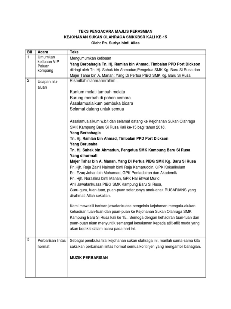 Teks Pengacara Majlis Perasmian Sukan Tahunan Sekolah Pdf