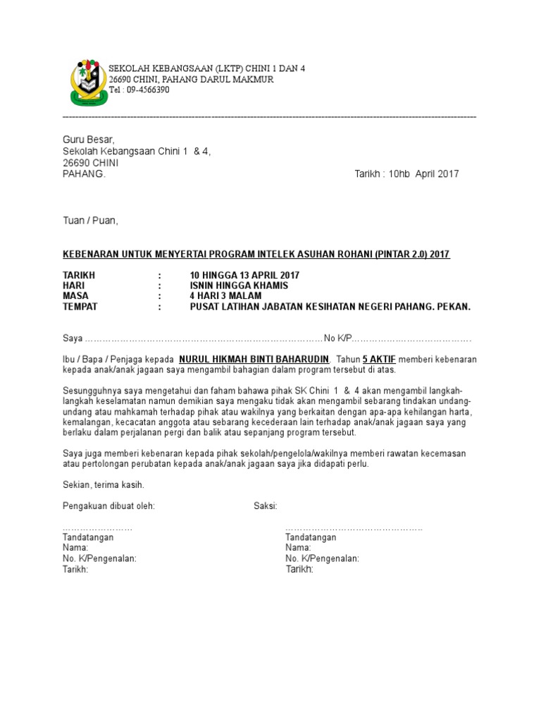 Surat Kebenaran Ibu Bapa Penjaga Pdf