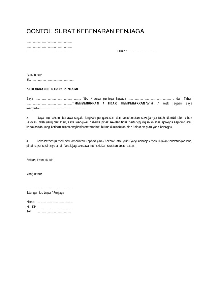 Contoh Surat Kebenaran Penjaga Pdf